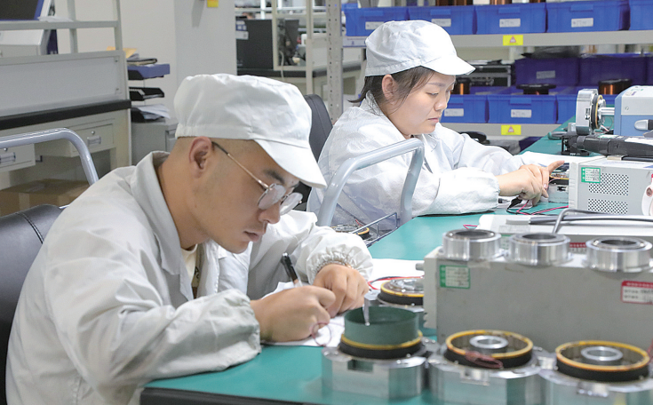 图为操作人员正在测试电机产品的性能。沈阳 摄