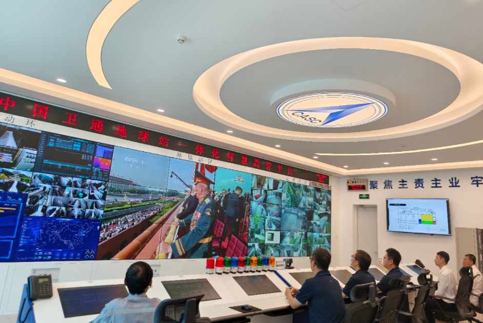 此刻,在距离天安门广场不到30公里的中国卫通北京地球站,一场无声却紧张的“保障战斗”正同步打响。作为阅兵式广播电视信号传输的“核心枢纽”,每一位值守人员都深知,他们手中的设备、眼前的数据流,承载着千家万户的期待,担当着精准传递盛典画面的重任。