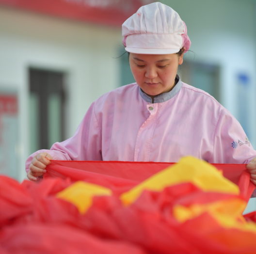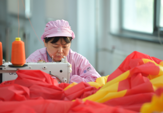 其中,最关键的是线迹密度:1公分内约缝制33个针脚。“高速飞行中,任何一处拼缝松动都可能导致整面标语解体。”贾华明严肃地说,缝制不仅要保证字体拼接得整齐美观,还要通过检验线迹密度,确保强度达标。