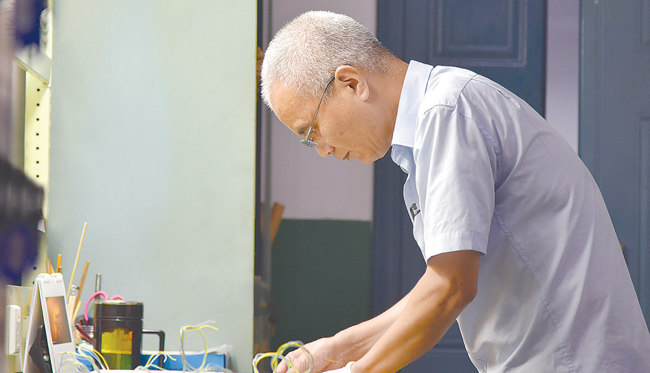 图为车间库房包装员正在仔细包装产品。 梁玲 摄