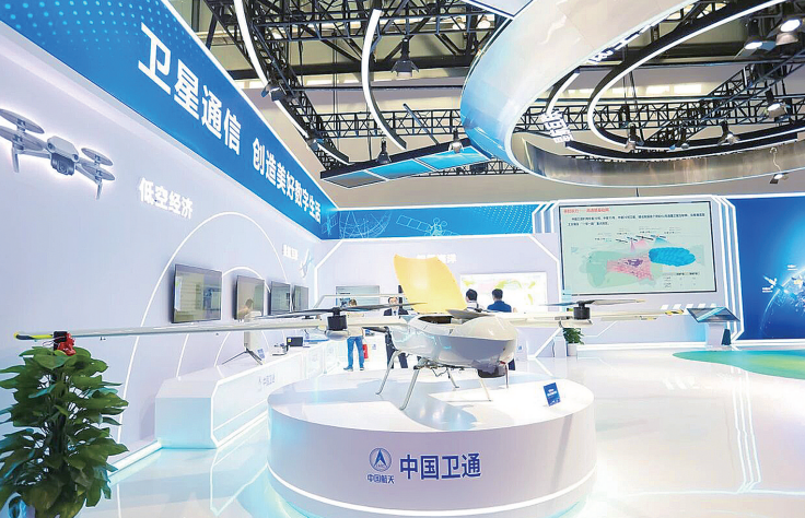 图为中国卫通针对无人机应用场景布置的展台。魏彤 摄
