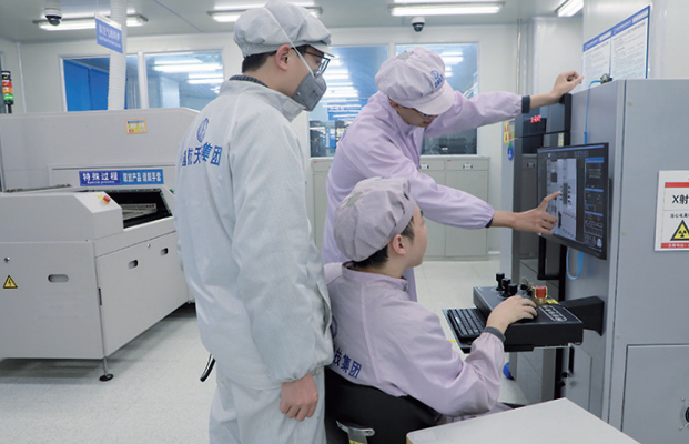 图为7105厂电装车间青年讨论攻坚问题。林双 摄